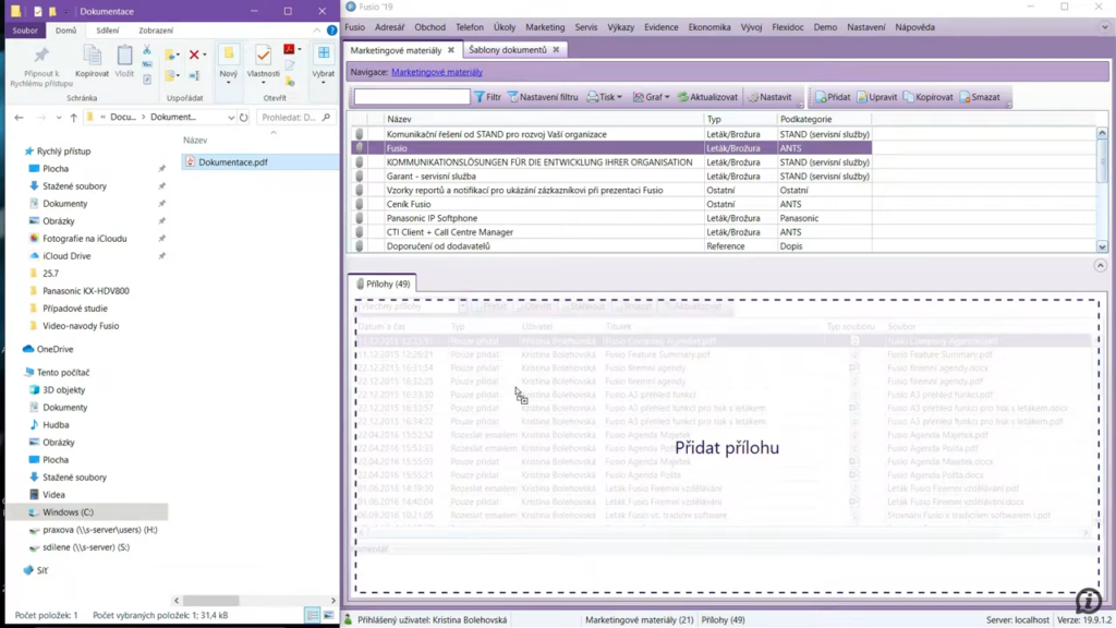 K záznamům ve Fusio můžete pohodlně přidávat nejrůznější typy příloh. Všechny soubory se ukládají bezpečně na server, kde Váš správce zajistí jejich zálohování. Potřebné dokumenty a materiály tak budete mít přehledně na jednom místě. Navíc, Vám implementátor může nastavit pokročilejší funkce, jako, například, možnost automatického rozesílání nově vložených příloh na e-maily vybraných kolegů…