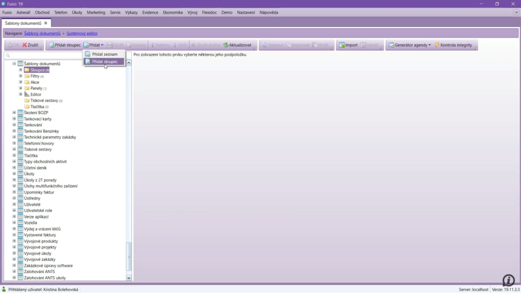 Druhou možností, jak přidat nový sloupec do vybraného seznamu, je použít tlačítko Přidat sloupec. V takovém případě budeme muset ručně založit také nový Databázový sloupec a Editační pole v Editoru příslušného seznamu a nastavit jejich parametry…
