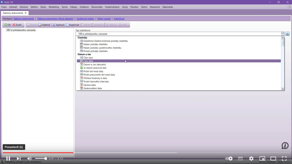 Jedny ze základních stavebních prvků, které se používají při implementaci Fusio, jsou Substituce. Substituce určují, jaká hodnota se použije při zpracování v daném místě a může jich být velké množství, hodně typů a kategorií. V tomto videu si představíme jednoduché substituce a možnost jejich využití při nastavování výchozích hodnot editačních polí.