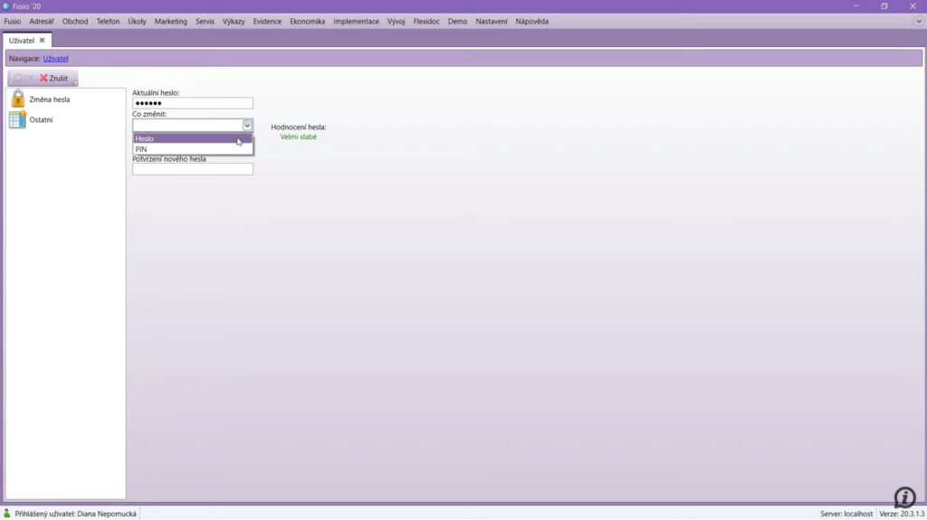 Změna hesla a PINu pro vstup do Fusio
