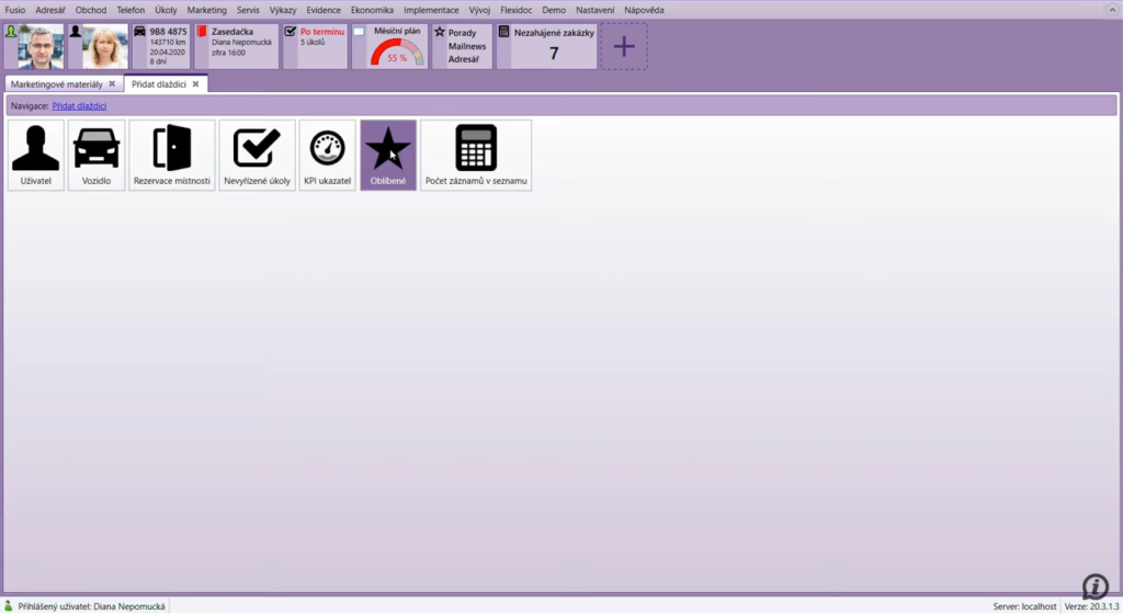 Dlaždice zobrazují aktuální informace ze systému. Dají se využít pro informování uživatele o konkrétních stavech, pro grafické zobrazení procenta plnění plánu, jako částečná náhrada za report či jako zkratka pro rychlý přístup k oblíbeným seznamům. Jakou dlaždici si do Fusio přidáte Vy?