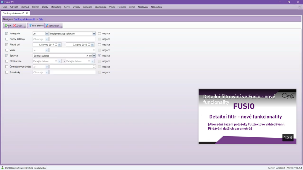 Ve Fusio vždy snadno a rychle vyhledáte potřebný záznam, ať už k tomu využijte rychlý filtr, fulltextové vyhledávání, kontextové menu či pokročilé filtrování: