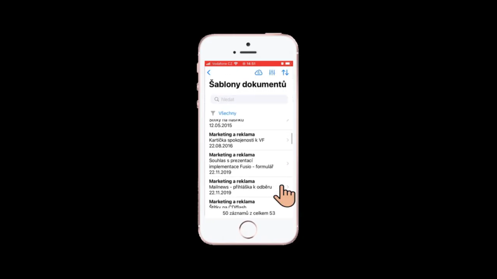 Aplikace Fusio M slouží pro mobilní prohlížení dat v seznamech Fusio. K uloženým datům má uživatel přístup na základě oprávnění, která mu byla udělena v systému Fusio. Přes jednotlivé položky hlavního menu Fusio M, se lze snadno proklikat k požadovaným záznamům a jejich detailům, včetně podseznamů a uložených příloh ve formátech PDF, PNG či JPG.