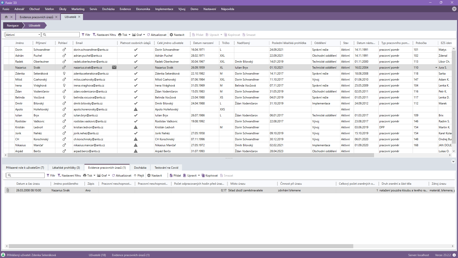 - Přístupová oprávnění (data v bezpečí) a historie změn.
