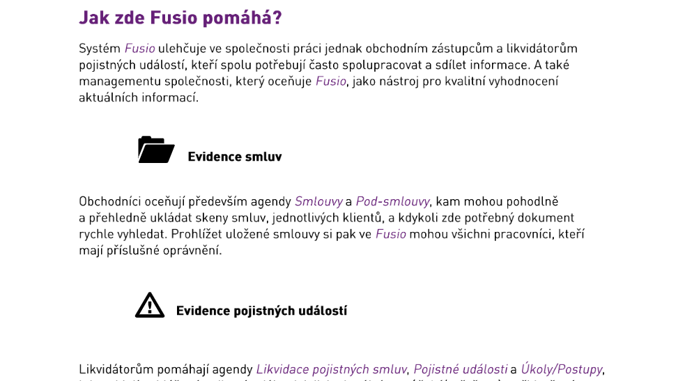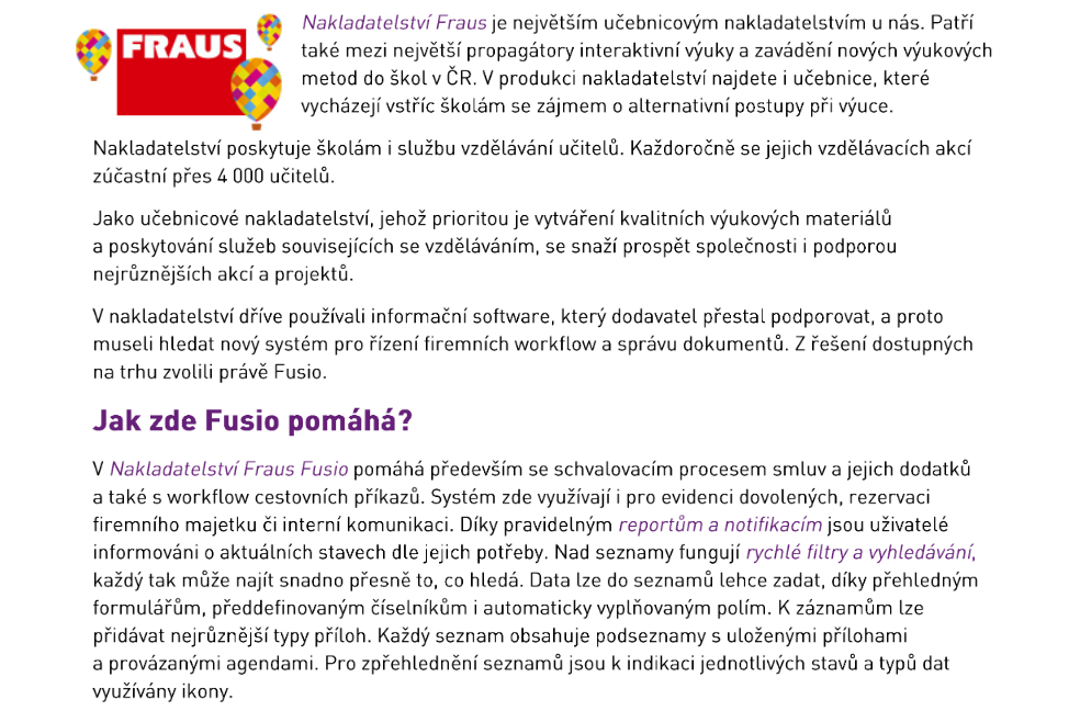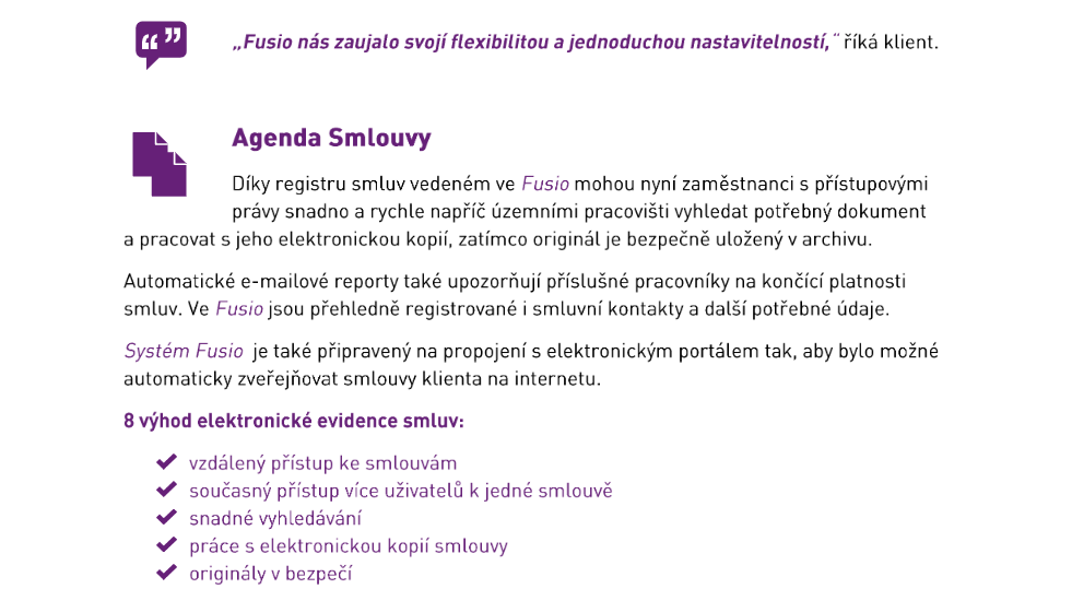 „Díky Fusio máme absolutní přehled o smlouvách a naše data jsou spolehlivě zálohována a archivována.“