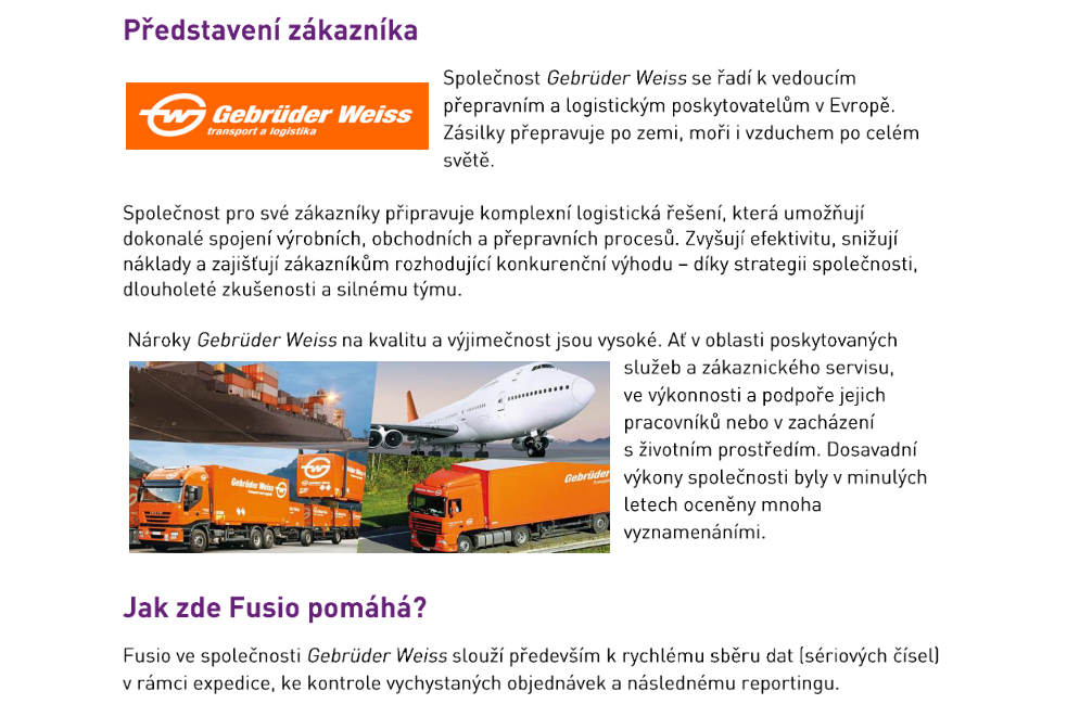 „Máme spočítáno, že nám aplikace Fusio ušetří 1,5 – 2 hod. práce na jednoho zaměstnance denně a urychlí celý proces, aby bylo vše správně a včas vychystáno.”