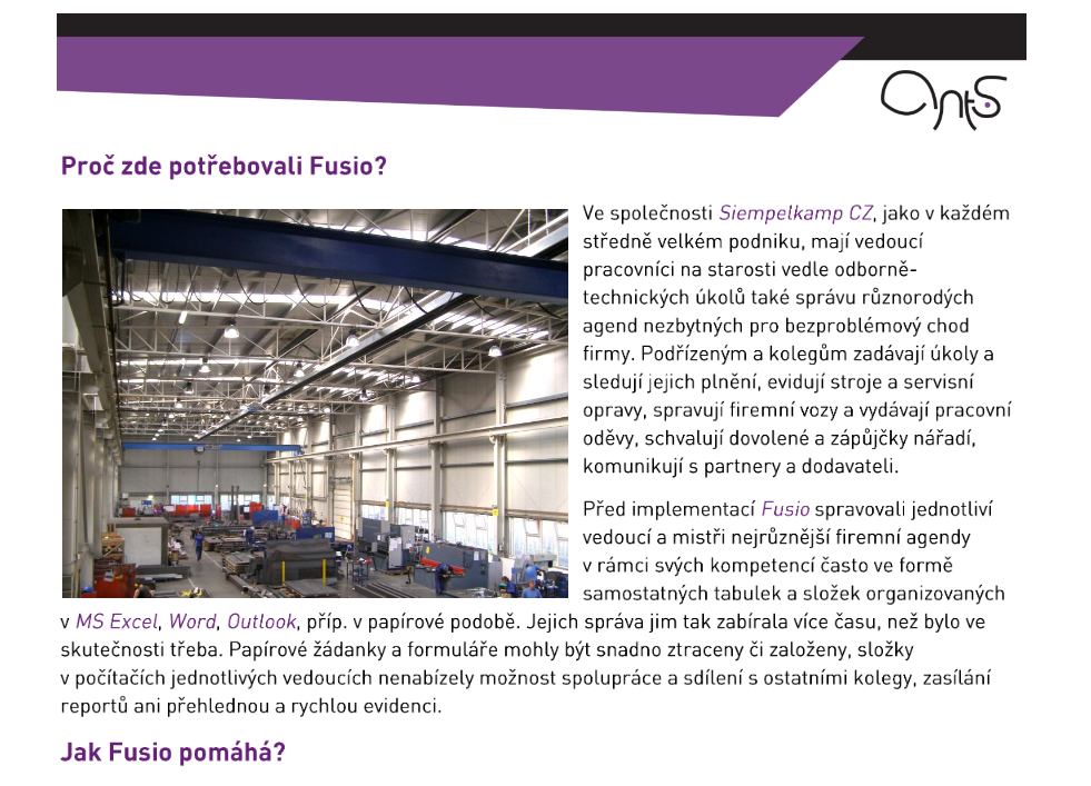 „Fusio nám zrychlilo jednotlivé procesy, které se dřív brzdily nekomunikací. Pomáhají nám automaticky generované úkoly.“